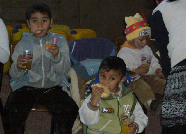 Loscos, durante la fiesta en un descanso que aprovecharon para reponer fuerzas |
